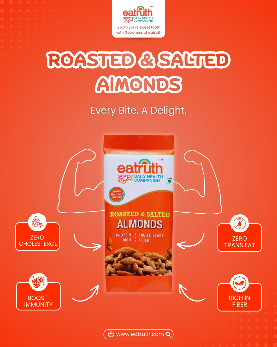 Whether you are looking for a healthy daily snack, a protein-rich office munch, or a travel-friendly dry fruit option, Eatruth Roasted & Salted Almonds are designed to fit perfectly into your lifestyle.